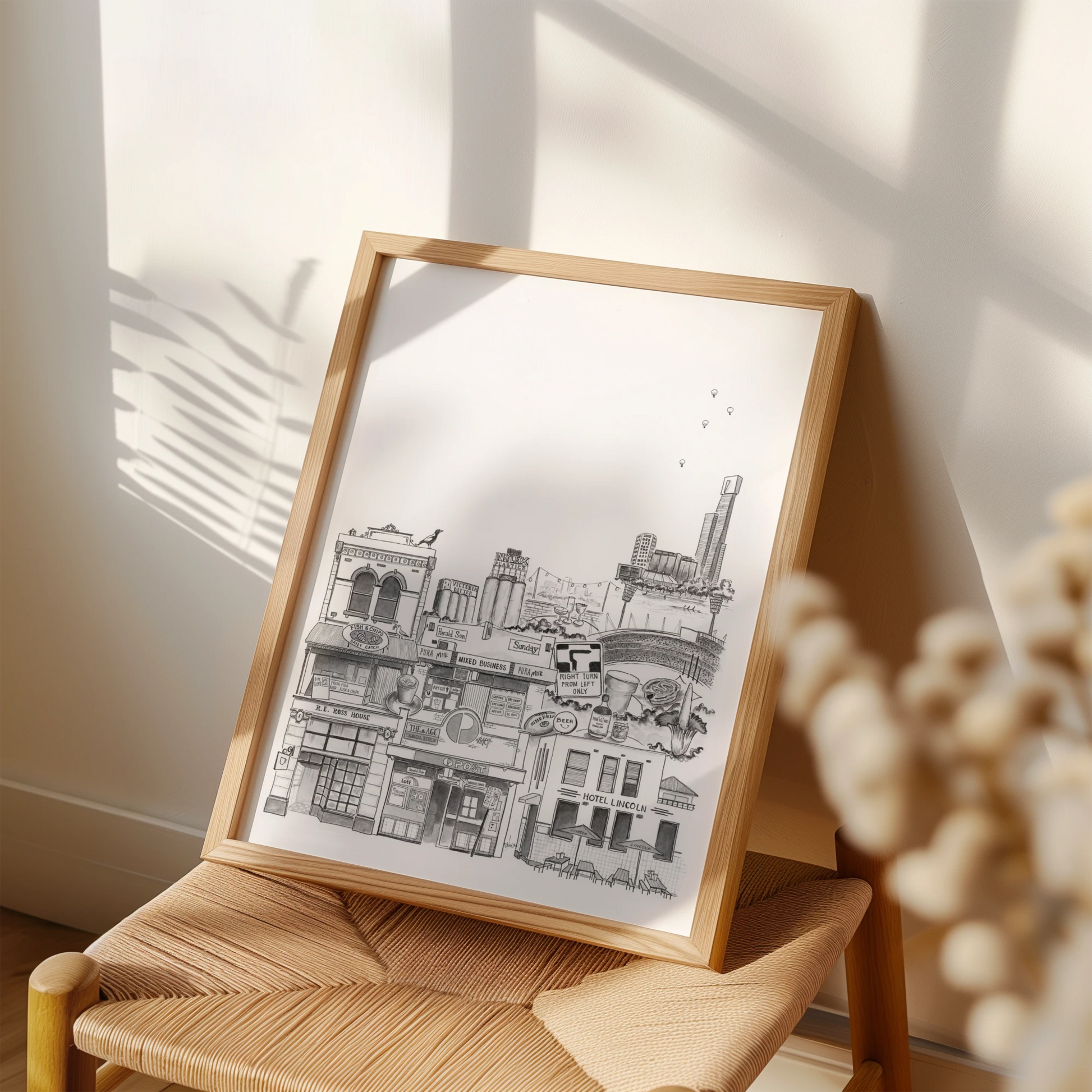 It is a playful celebration of the everyday magic that defines our city. Perfect for locals who want to showcase their Naarm pride on the wall.