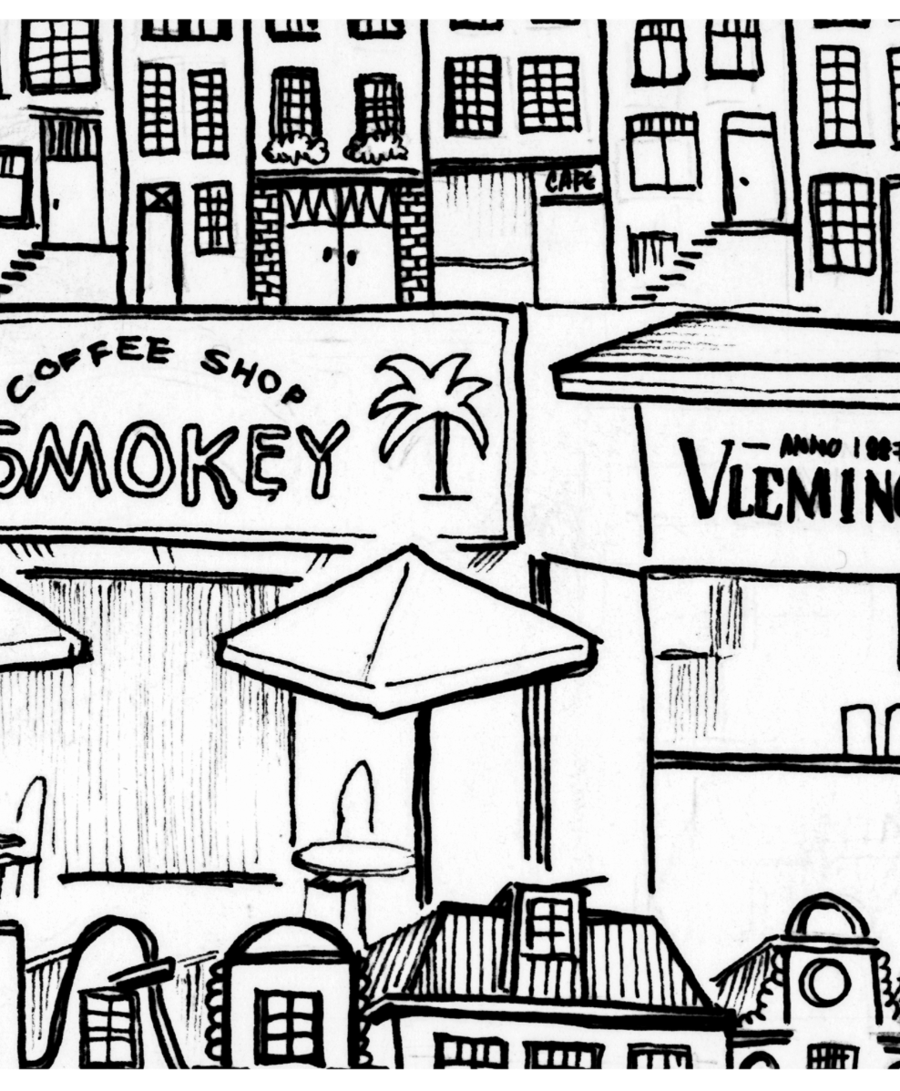 This sketch captures the everyday moments and unique flavors that make Amsterdam unforgettable.