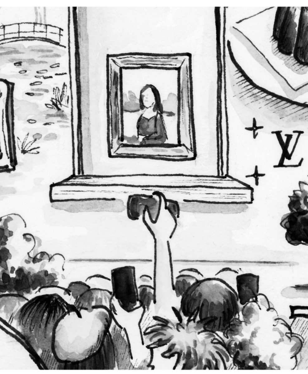 - The reality of glimpsing the Mona Lisa through a sea of raised phones